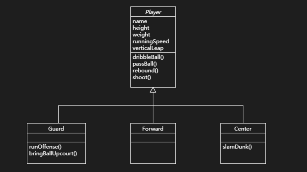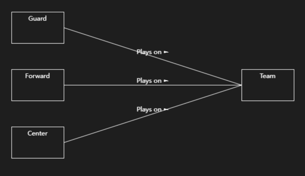 - “队员”由“后卫”、“前锋”、“中锋”继承