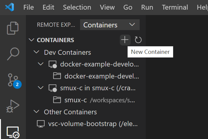 点击“remote”的图标,在右上角的下拉框中选择“Containers”,接着点击“+”,随后如“方法1”的操作一致: