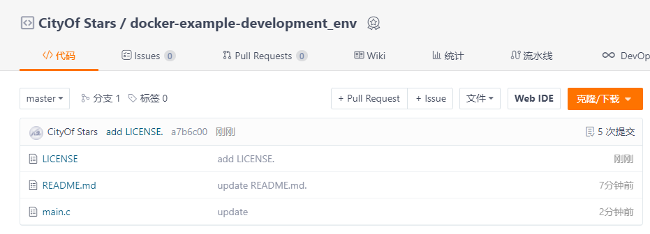 到了这里,我们已经顺利的将代码放入到带有纯净开发环境的容器中了。之后我们可以做以下活动:
