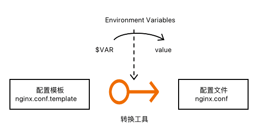 但是我们知道Nginx并不支持在配置文件中使用环境变量,所以我们需要通过一些方式来实现这个需求,且不需要改Nginx的源码。经过思考发现可以用工具去替换配置文件中的环境变量,这样就可以实现了,以下是一个有效方案: