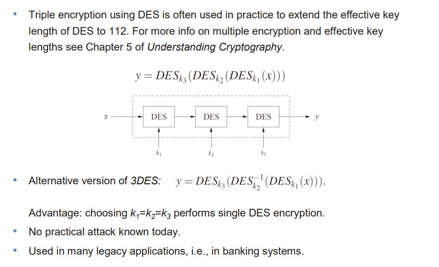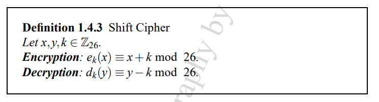 - \(x\)为明文、\(y\)为密文、\(k\)为密钥、所有可能密钥组成的集合称为密钥空间(key space)
