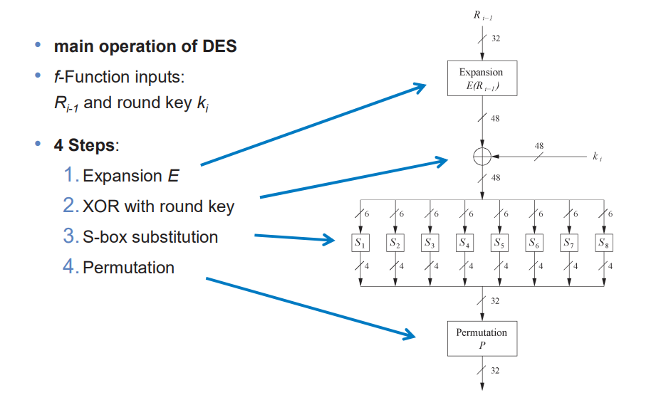 - 不少主流的分组密码也是基于Feistel网络,比如AES。Feistel网络的示例包括Blowfish、CAST、KASUMI、Mars、MISTY1、Twofish和RC6。与DES完全不同的密码就是IDEA,它将3种不同的代数结构作为原子操作。