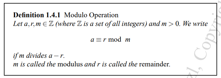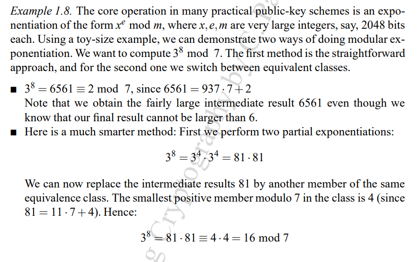 等价类:对于一个给定模数m,选择等价类中任何一个元素用于计算的结果都是一样的。