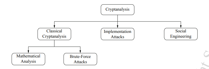古典密码分析可以理解为从密文 \(y\) 中恢复明文 \(x\),或反过来,从密文 \(y\) 中恢复密钥 \(k\) 的一种门科。对此,密码分析可分为两类: