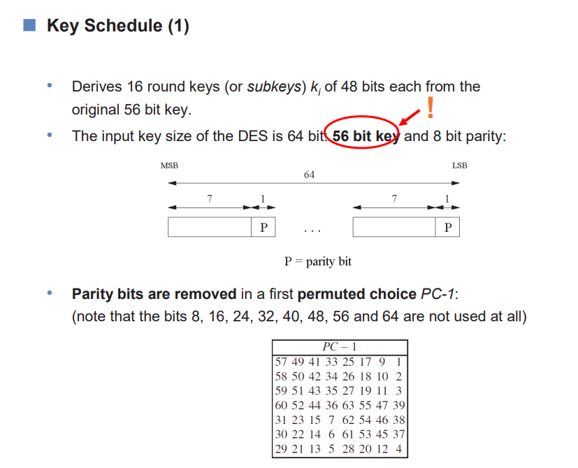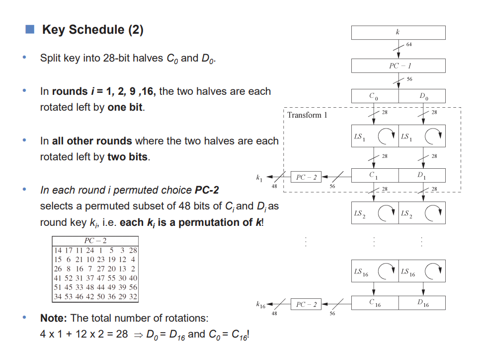 因为第\(i\)轮中,64位的轮密钥\(K_i\)是由寄存器\(K\)当前内容最左边的64位组成,因此有: